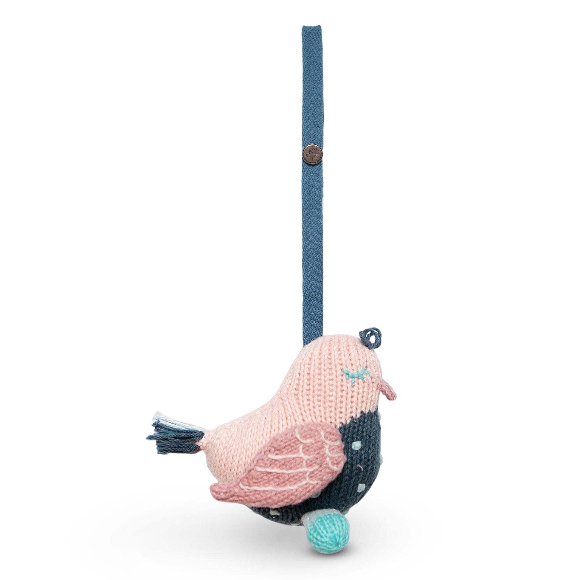 Turn your baby's play gym into a little nest of their own with our sweet Stella the Sparrow knit stroller toy. These knit toys were hand-knit at an artisanal women's collaborative in Peru using G.O.T.S. certified organic cotton yarn. Our stroller toys can be used on their own or attached to our "Play Gym".