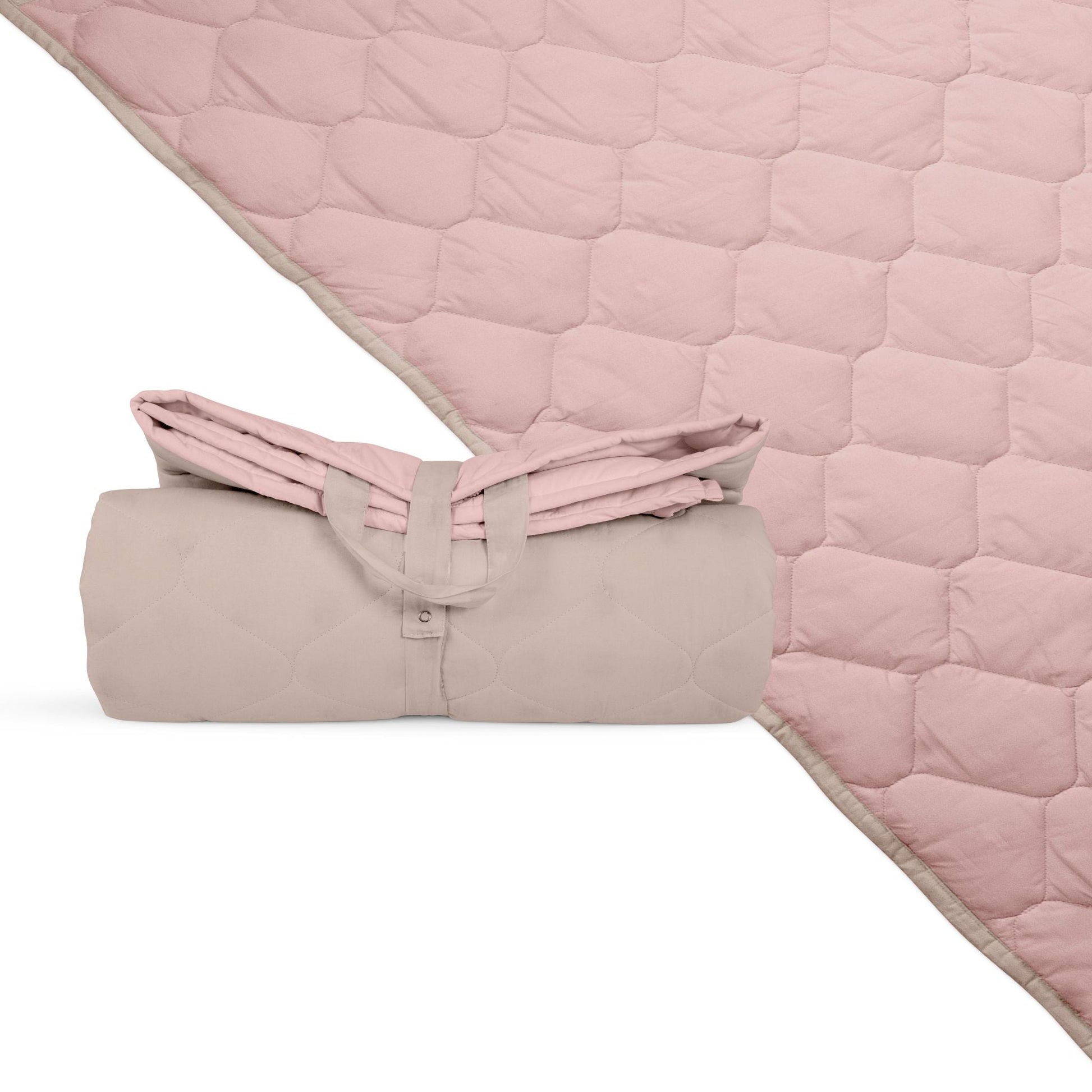 Ready for every family adventure, this roll-up picnic blanket features organic quilted water repellent cotton and a carry handle for comfort and convenience.